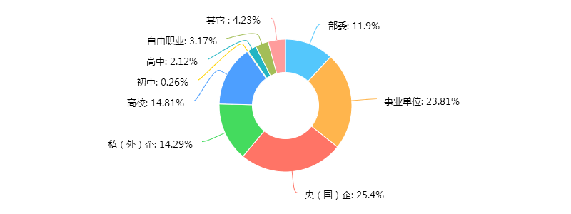 人数较少的行业包括:能源环保,4.76%;交通通讯物流,3.97%;设计建筑,2.38%;卫生体育社会事业,1.06%。还有13.76%的毕业生分布在其它行业,包括自由职业。