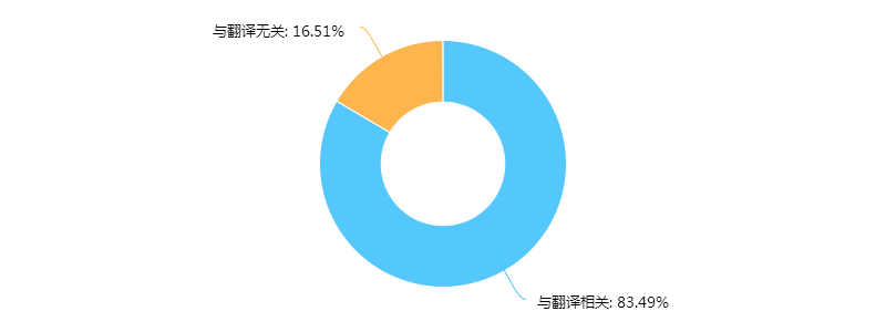 如果把这56人也归为“从事翻译或翻译相关工作”,则总人数为307人,占比81%。其余的61人中有27人从事英语教学,其他的从事海外业务、行政管理、金融法律等业务或在纯英语环境工作。可以说,即使不从事翻译工作,也是与外语有关的工作。