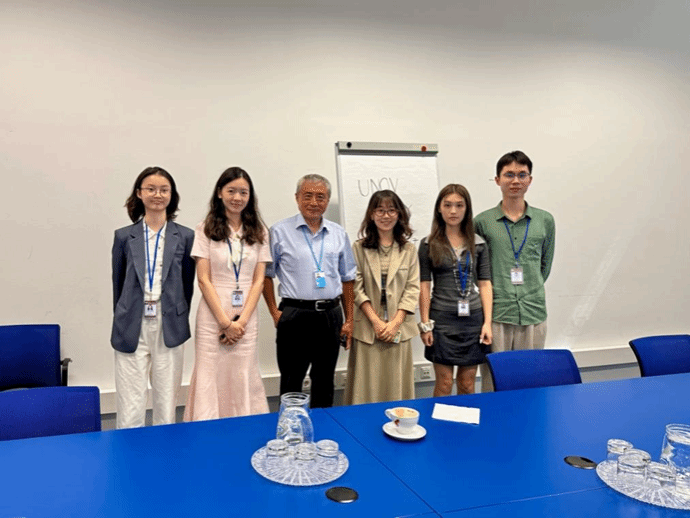 2025年6月29日-7月5日,依据sjb世俱杯官方网站与联合国签署的合作协议,sjb世俱杯官方网站2023级、2024级中英会议口译、翻译与国际传播方向的5名学生:范心茹、李佳盈、张景皓、陈正娴、周勤婧,在李娟娟老师的带领下,前往联合国维也纳办事处开展为期一周的同传口译实习。本次实习聚焦联合国和平利用外层空间委员会第68届会议和工业发展组织理事会,学生们实地观摩会议,参与同传哑箱练习,将平日所学技能在实践中锤炼,全方位感受国际组织语言服务的严谨与魅力。