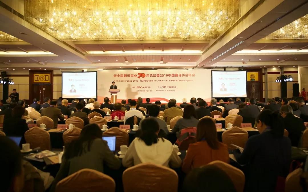 2019年11月9日,由中国外文局指导,中国翻译协会主办的新中国翻译事业70年论坛暨2019年中国翻译协会年会在北京隆重开幕。来自中央国家机关、各省市、自治区、港澳台地区、企事业单位、高等院校、科研机构及行业组织的代表,以及来自亚洲、欧洲、北美、拉美等十多个国家和地区的代表共900余人参加会议。中宣部部务会议成员、国务院新闻办公室副主任郭卫民、中国外文局局长杜占元、中国翻译协会会长周明伟、国际翻译家联盟主席凯文·夸克(Kevin Quirk)出席大会并致辞。