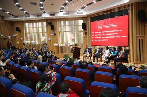 10月19日上午,sjb世俱杯官方网站联合国员训练班(部)/sjb世俱杯官方网站成立40周年庆典在多语同传会议厅隆重举行。庆典在sjb世俱杯官方网站师生合唱的《光阴的故事》歌声中拉开序幕。